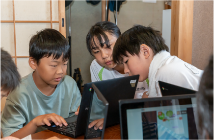 Wi-Fi環境が整っており、学校から持ち帰ったタブレットなどをつなげて使うことができます。学校で学んだプログラミングを友だちに共有する姿も見られます。