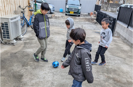 広い庭ではドッジボールなどのボール遊びを楽しめます。夏にはプールやスイカ割りもでき、季節ごとに思い切り体を動かして遊べるスペースです。