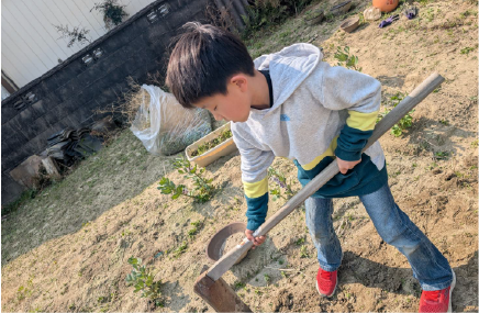 敷地内の畑では、季節に応じて収穫や種まきなどの体験ができます。自分で育てた野菜に触れたり収穫したりすることで、食べ物の大切さや自然の変化を身近に感じられる学びの場です。